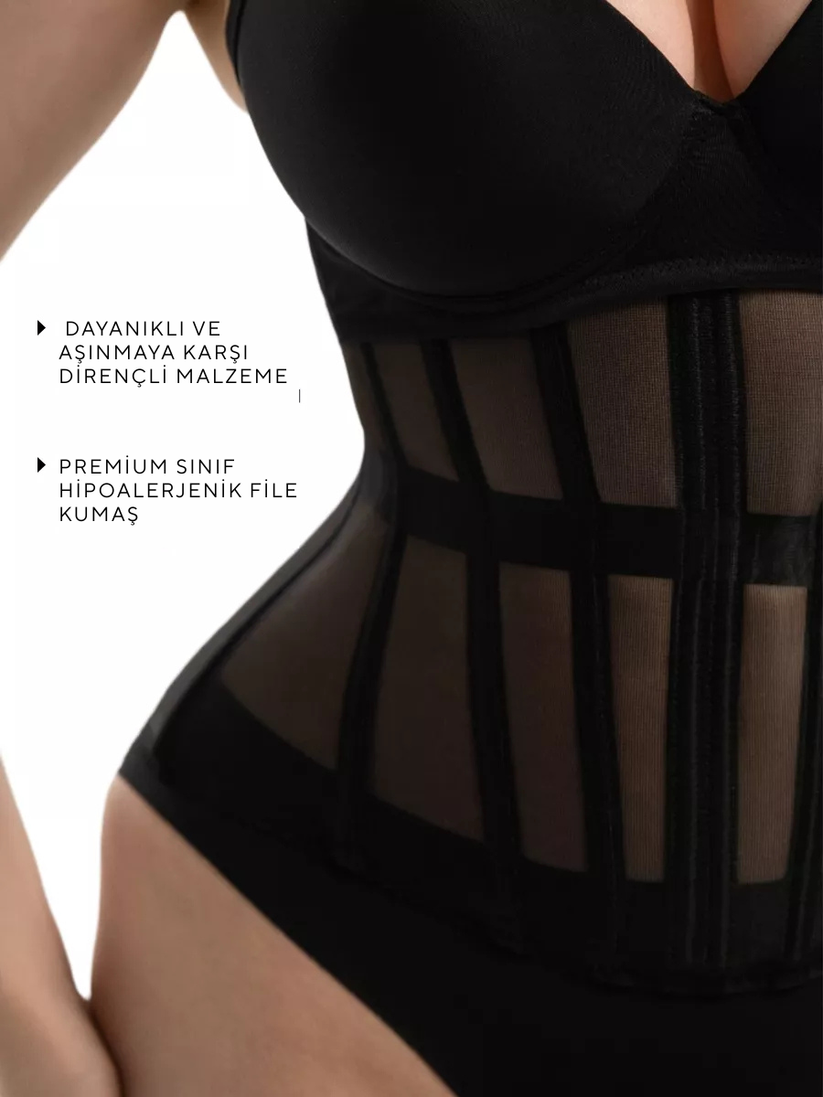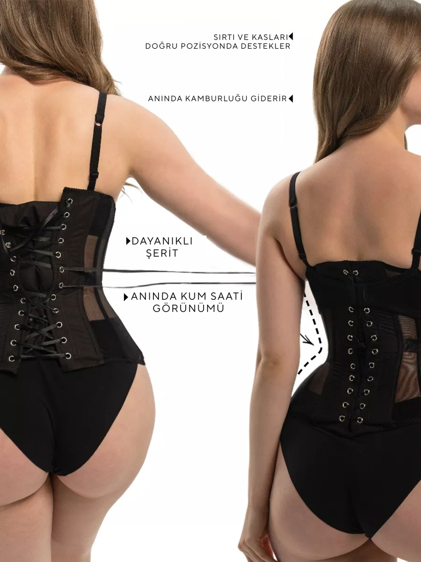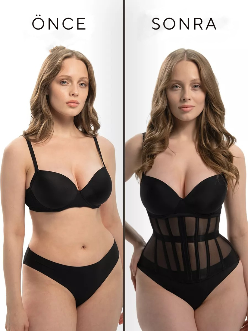 Sadece bir korse değil, gün boyu seninle olan görünmez desteğin. Göbeğini ve belini şekillendirir, duruşunu düzeltir, kıyafetlerinin altında fark edilmeden seni daha fit ve zarif gösterir.
